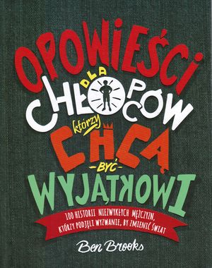 To przystępnie napisany zbiór 100 historii znanych i mniej znanych mężczyzn z przeszłości i współczesności, którzy odważyli się wyjść poza schematy i obalić stereotypy, każdy z nich w wyjątkowy sposób! Od odkrywców i naukowców, przez filozofów, przyrodników, sportowców, po artystów i polityków, jak Stephen Hawking, Barack Obama, Salvador Dali, Ludwig van Beethoven, Lionel Messi, Nelson Mandela czy John Lennon, a także wielu innych bohaterów z różnych środowisk społecznych i ze wszystkich zakątków świata! Książka pomaga uwierzyć chłopcom, że mogą zostać kim tylko chcą! Ta ponadczasowa lektura rozpoczyna dyskusję o rolach przypisanych płciom, oferując chłopcom przesłanie: męskość może mieć wiele znaczeń. W tej książce nie znajdziesz bajek o zgładzaniu smoków czy ratowaniu księżniczek. W „Opowieściach dla chłopców, którzy chcą być wyjątkowi”, autor Ben Brooks, z pomocą barwnych ilustracji Quintona Wintera, przedstawia fascynujące historie, które są pochwałą wrażliwości i siły wewnętrznej, indywidualizmu i pomysłowości, wytrwałości i wiary w siebie.[empik].