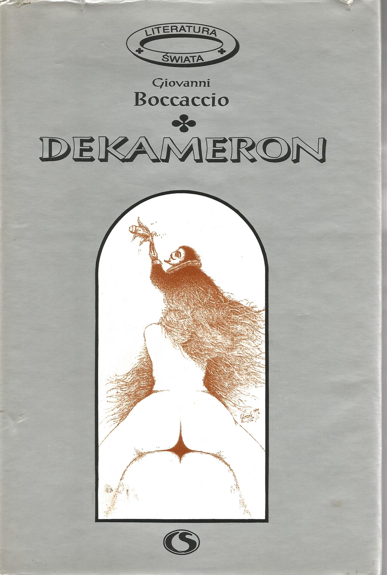 Zawiera: dzień pierwszy: Spowiedź Ciappelletta. - Podróż Abrahama z Paryża do Rzymu. - Trzy pierścienie. - Ciężki grzech. - Kury. - Sto za jedno. - Poskromienie skąpca. - Skąpiec Grimaldi. - Pątniczka. - Zakochany starzec. - Dzień drugi: Martellino-Kaleka. - Modlitwa do świętego Juliana. - Dziwne małżeństwo. - Landolfo Rufolo. - Andreuccio z Perugii. - Znalezione dzieci. - Alatiel, Narzeczona króla Algarbii. - Przypadki grabiego Antwerpii. - Nieszczęścia poczciwej białogłowy. - Kalendarz starych mężów. - Dzień trzeci: Wilk w owczarni. - Król włosy strzyże. - Spowiedź. - Droga do raju. - Koń i żona. - W miłości jak na wojnie. - Pielgrzym. - Ferondo w czyśćcu. - Giletta z Narbonny. - Diabeł i piekło. - Dzień czwarty: Ghismonda i Guiscardo. - Miłostki Archanioła Gabriela. - Zazdrość. - Narzeczona króla Granady, czyli nieszczęśni miłośnicy. - Lisabetta z Mesyny. - Dwa sny. - Dowód niewinności. - Ofiary miłości. - Okrutny mąż. - Cudowne przytrafienie pewnego nieboszczyka. - Dzień dziesiąty: Podwójne porwanie. - strzaly Martuccia. - Na włos od śmierci. - Słowik. - Dwaj rywale. - Szczęśliwe spotkanie. - Violanta. - Okrutne łowy. - Sokół. - Zgodny mąż.