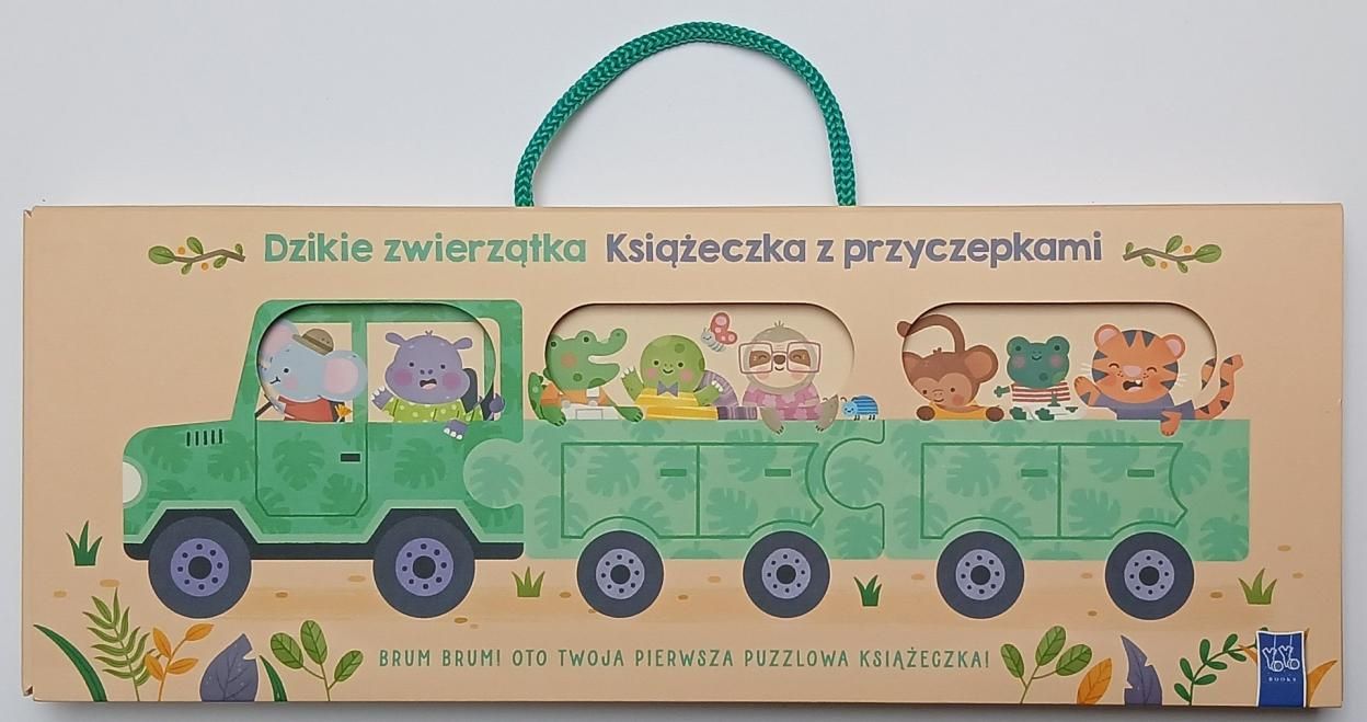 Dołącz do wesołej zwierzęcej ekipy na safari! Wybierz jedną z puzzlowych książeczek-przyczepek i poznaj przyjaciół z tajemniczej fauny: słonia Trąbusia, hipopotama Pysia, tygryska Cętka, rozbrykaną gromadkę małpek - i nie tylko! Dzięki książeczkom w kształcie puzzli możesz ułożyć wyjątkowy pojazd z przyczepkami, który zabierze Cię w podróż do pełnego przygód świata dzikiej przyrody! [empik.com]